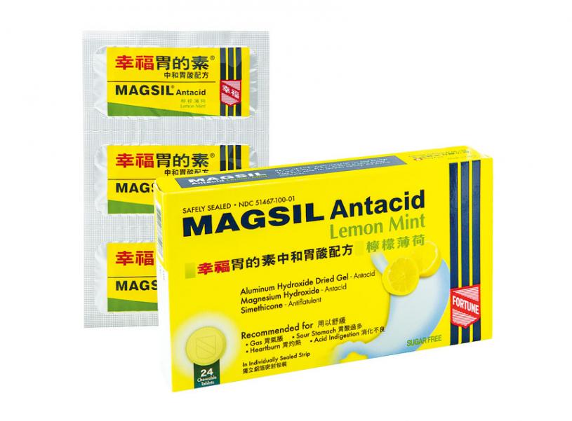 「幸福胃的素」含有Dimethylpolysiloxane,能夠將胃部的細氣泡結集成大氣泡,使胃氣容易嗝出,從而不會有胃脹的難受感覺;解酸劑是以中和胃酸原理減低「火燒心」的不適,「幸福胃的素」另含有Aluminum Hydroxide及Magnesium Hydroxide,有助中和胃酸、舒緩胃酸倒流的情況。