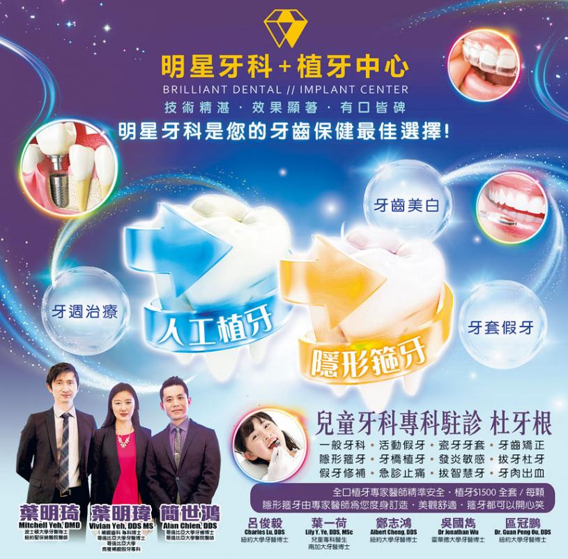 由著名牙醫畢業於波士頓大學、紐約聖保醫院醫師葉明琦牙醫博士(Mitchell Yeh, DMD)與同是國際口腔植牙專科醫學院院士的簡世鴻博士(Alan Chien, DDS)及哥倫大學膺復補綴假牙專科牙醫葉明瑋博士(Vivian Yeh,DDS MS)共同主理位於布碌崙、法拉盛的「明星牙科中心」。並誠邀五位畢業於美國名牌大學牙醫——紐約大學的呂俊毅牙醫(Charles Lu, DDS)、兒童專科醫生葉一荷(Lily Y.Ye DDS, MSc)、紐約大學牙醫鄭志鴻博士(Albert Cheng, DDS)、吳國雋牙醫博士(Dr.Jonathan Wu)、區冠鵬牙醫博士(Guan Peng Ou, DDS)加盟。