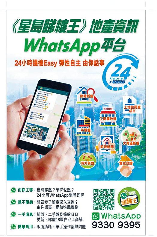 詳情請留意《星島睇樓王》WhatsApp平台,即按9330 9395加入平台,也可以掃一掃QR CODE,同時亦可Click:https://bit.ly/3ptEzJ8。