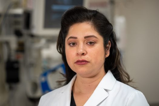 LA County Department of Health Services Dr. Erika Flores Uribe, at LAC+USC Medical Center, Thursday, April 30, 2020. (Photo/Michael Owen Baker)