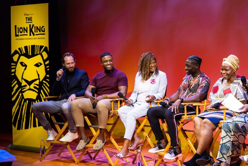Left to right: Stephen Carlile, L. Steven Taylor, Bonita Hamilton, Brandon A. McCall, and Tshidi Manye of The Lion King. Photo by Rebecca J Michelson.
