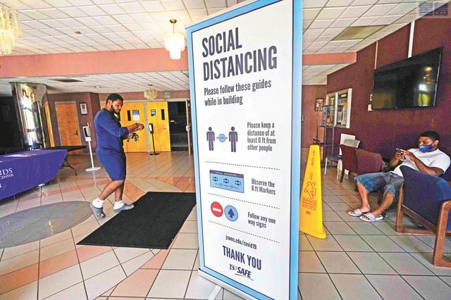 這間有16,000名學生的學校,有最多三成課程恢復面授教學,而去年只有少數。校方規定室內需戴口罩,學生每次進入校園時需接受健康篩檢,進入每間課室前需掃描QR碼記錄在校行蹤。