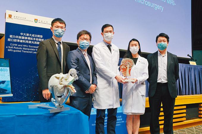 目前頭頸癌可利用激光消融術治療,但病人必須保持極端的姿勢定位,如捲起舌頭、張開嘴巴或伸長頸部,才足以將腫瘤暴露在激光之下,導致現有的激光消融系統不適用於治療長在上述部位的腫瘤。不過中大及港大的聯合研究團隊研發可配合磁力共振應用的「軟體機械人系統」,系統可以配合激光光纖,進行內窺鏡介入,並透過為患者度身訂造的口腔固定器,將能量集中在病變位置,為腫瘤進行消融治療。
