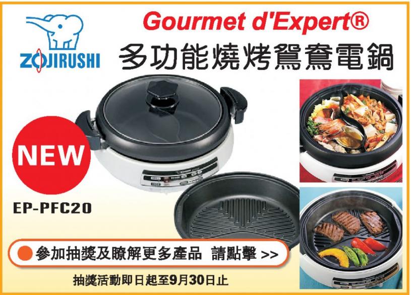 活動辦法:凡填寫抽獎表格即可抽Gourmet D’Expert® 多功能燒烤鴛鴦電鍋(EP-PFC20)價值$204 (共一名)