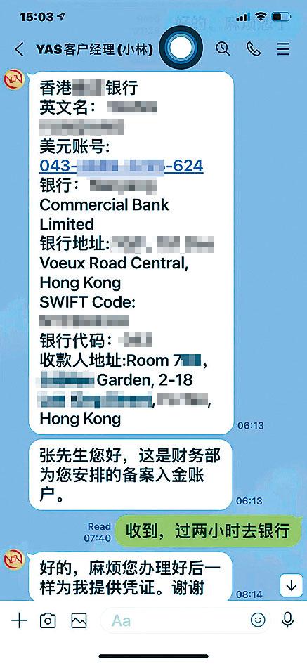 黃太說,其經歷與張勝利幾近一樣,匯款的香港銀行帳戶也相同,不同是對方自稱在香港真實存在的大型投資公司工作。為討回公道,她在一名回流香港定居的美國朋友協助下向本港警方報案。