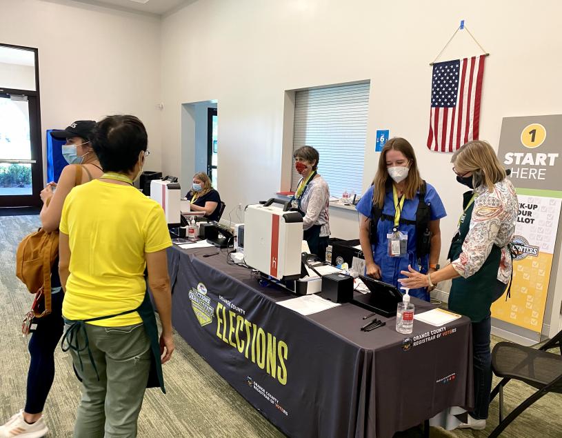 橙縣選務部門早在罷免選舉日10天前已經部分開放了投票站投票,及在社區部分地點置放選票蒐集箱,方便選民就近投遞郵寄選票。爾灣市本次罷免選舉僅開放了5處投票站,包括市政府所在地爾灣Civic Center (地址:1 Civic Center Plaza),Los Olivos 社區中心(101 Alfonso),Portola Spring 社區中心(900 Tomato Springs),爾灣中文學校/南海岸文化中心(9 Truman),爾灣加州大學(UCI) Anteater 社區資源中心(4079 Mesa Road)。相較以往其他選舉,本次罷免投票站數量少了很多。記者觀察到,也因此,爾灣各投票站陸續有較多選民前來投票,絡繹不絕。尤其市政府投票站,更是出現了選民大排長龍等待投票的場景。幾處投票站前來投票的選民,不乏亞裔面孔,而且多為華裔選民,不僅僅限於爾灣中文學校投票站。