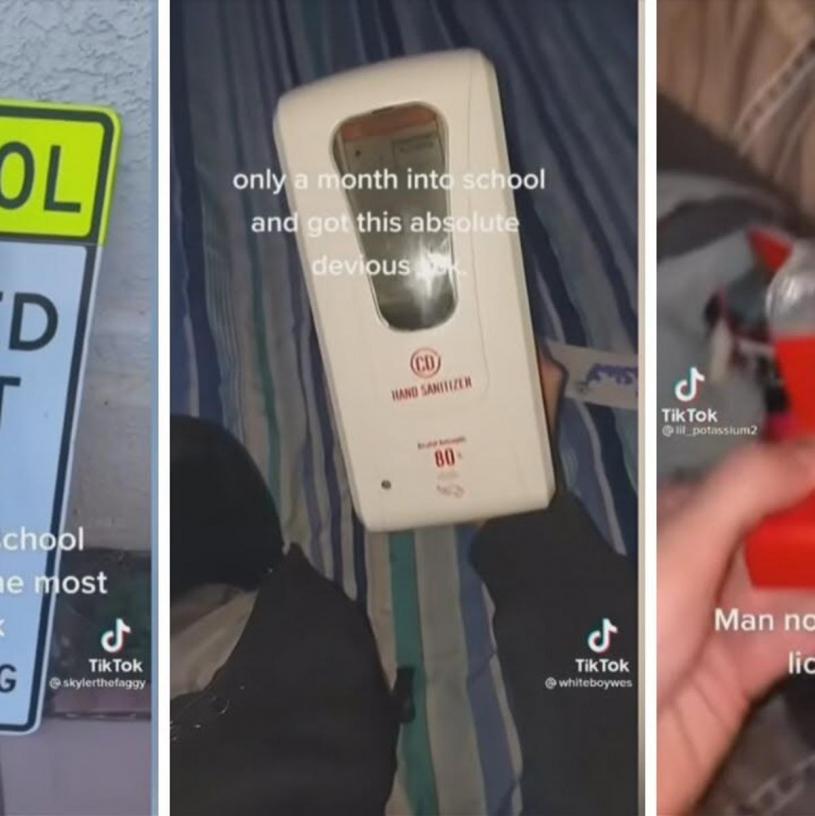 從最先流傳的一段影片可見,有人從書包拿出一大盒口罩,相信是當事人過去1個月從學校偷來的贓物,屏幕上也附有「早知道不買口罩」的字句,片段1星期內就錄得近24萬次觀看。數天後另一段影片顯示有人偷取潔手器,瀏覽人次更達720萬。隨後陸續有多條同類影片曝光,一段聲稱盜取顯微鏡的影片,觀看次數也有260萬。