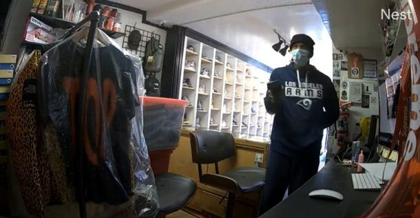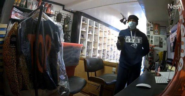 根據《KTLA 5》報道,此起搶案發生在14日下午12點30分左右位於梅爾羅斯大道7800皆區上的一家專門銷售限量運動鞋的鞋店「Zero’s」。警方表示,當此名戴口罩的嫌犯進入該店家,店員以為是顧客便上前招呼,沒想到此名嫌犯迅速從口袋中掏出手槍,並遞給員工兩個白色垃圾袋,要他把值錢的衣服、鞋子和現金全部丟入待得手後嫌犯立即逃跑。