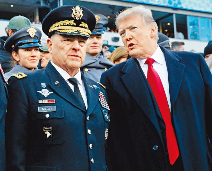 (星島日報報道)水案門名記者伍德沃德參與撰寫的新書披露,去年十一月初大選前後,參謀長聯席會議主席米利(Mark Milley)覺得時任總統特朗普精神狀態差,擔心他會失控,甚至可能會向中國開戰,因此透過秘密渠道,致電解放軍聯合參謀部參謀長李作成,向李保證美軍不會攻擊中國。米利也試圖限制特朗普發動核武打擊的能力,因為他認為特朗普那時已有精神問題。特朗普發表聲明稱,書中情節若屬實,米利就是叛國。