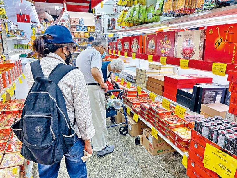 華埠寶榮行遭遇7月份便已開始準備並售賣月餅。工作人員介紹,今年月餅進價漲幅達40%至50%,主要受海運影響,往年五六千的貨運櫃今年漲價到兩三萬元。