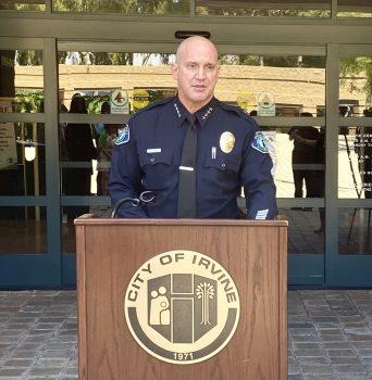 目前,爾灣臨時城市經理已任命爾灣警局助理局長肯特 (Michael Kent) 繼任爾灣警局局長。新任肯特局長是爾灣居民,1993 年在爾灣讀高中期間作為學生義工,就在 IPD 參與實習執法。肯特擁有加州州立大學富勒頓分校傳播學學士學位,及加州大學爾灣分校犯罪學(法律與社會)碩士學位;曾在洛杉磯警察局金西學院,警務高級管理學院(波士頓)和加州警察局長協會進修學習。他過去的執法履歷包括,巡邏官、現場培訓官、特警操作員、榮譽警衛官、偵探、巡邏中士、指揮執法隊中士、專業發展辦公室中士、調查中尉、特警中尉和行動中尉,並獲得諸多服務獎項。2016 年,他還獲得了國際警察局長協會頒發的40歲以下40位優秀警察獎。