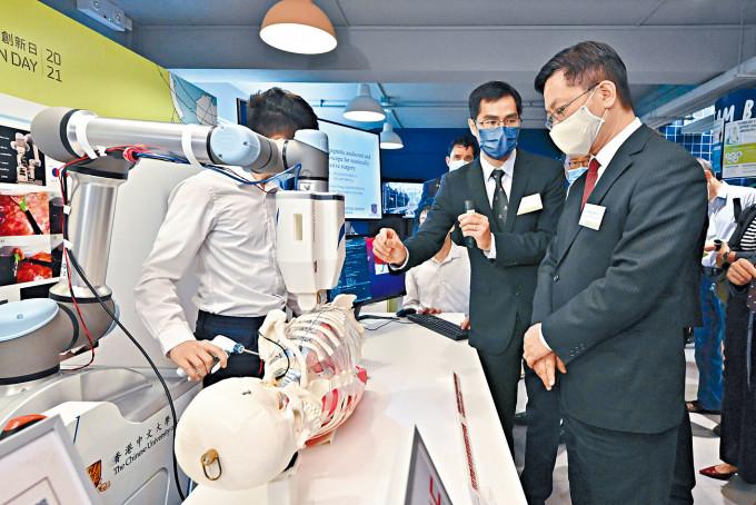 中大昨於大學新開設的創博館舉行中大創新日暨創博館開幕典禮,創新及科技局局長薛永恒致辭時指,很高興在活動上看到許多成功的前沿研究已發展成為創新技術,而政府亦積極推動創科發展,希望為香港經濟注入新動力,為年輕人提供更多優質的就業機會。