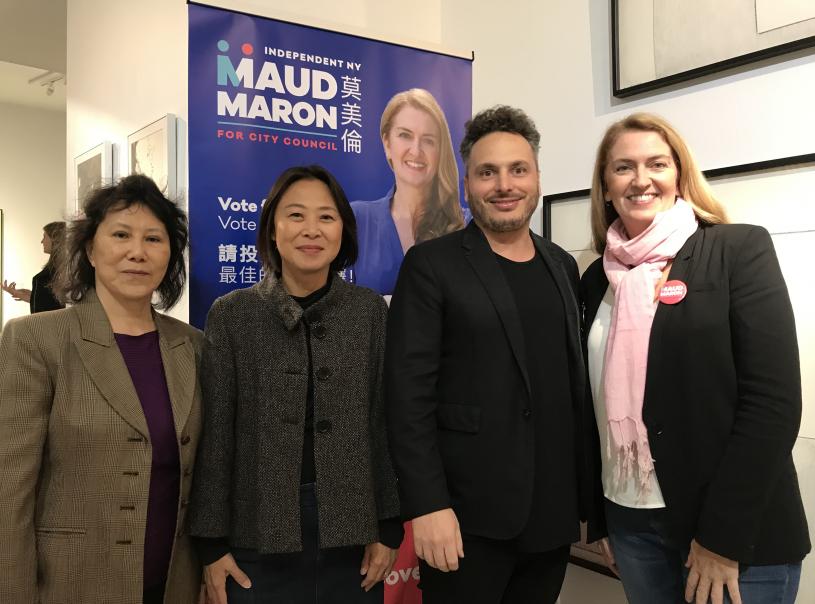 以獨立黨候選人參選第一選區市議員的莫美倫(Maud Maron)日前在下西區奕來畫廊展開競選籌款酒會,除了得到畫廊主人奕來(Eli Klein)的大力支持外,華人不乏支持者,大都是與莫美倫為教育議題上共同抗爭的盟友,當晚共籌到約二萬八千元。