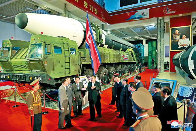 南韓媒體引述國防部副發言人文洪植昨日在例行記者會上表示,韓美情報部門正就國防發展展覽會相關情況進行嚴密分析和確認。韓聯社稱,當日展出的武器包括曾於去年十月建黨七十五周年紀念閱兵式上首度亮相、射程足以威脅美國本土全境的「火星-16型」新型洲際彈道導彈,以及「火星-8型」高超聲速導彈。朝中社昨天報道稱,金正恩評價這次活動為不亞於大規模閱兵的國力展現。