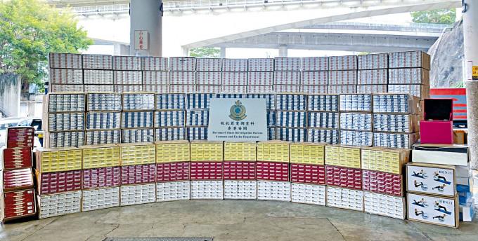 海關稅收調查組高級調查主任顏卓軒指出,本月初海關與澳洲當局交流分析及調查,發現有私煙循郵遞服務偷運到澳洲銷售。近日海關人員於荃灣兩個物流中心及九龍灣一個郵政中心,發現報稱由香港寄往澳洲的郵包內,藏有二百九十多萬枝未完稅香煙及約一千三百公斤煙草。人員相信有不法分子會用假資料,混入瑜伽球、濾水器及咕o臣等物品郵寄。
