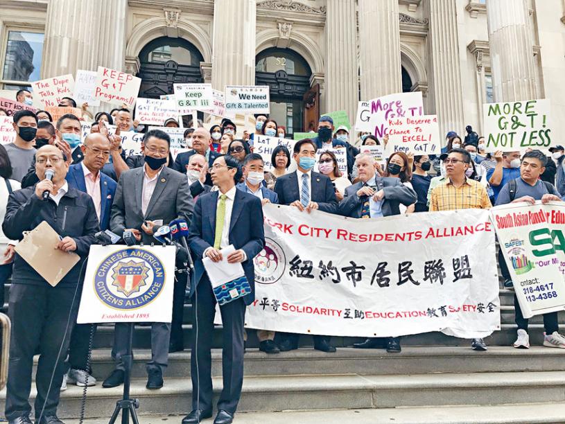 市長白思豪上周五宣布全面取消天才班(G&T)後,遭受各方强烈反對,12日百多名不同族裔的家長,現任民選官員及各官員候選人齊集在教育局門口,言詞嚴厲地批評市長的教育政策,建議在疫情後百廢待舉的紐約極需要振興經濟,而不是出力扼殺學習有天份的學童。