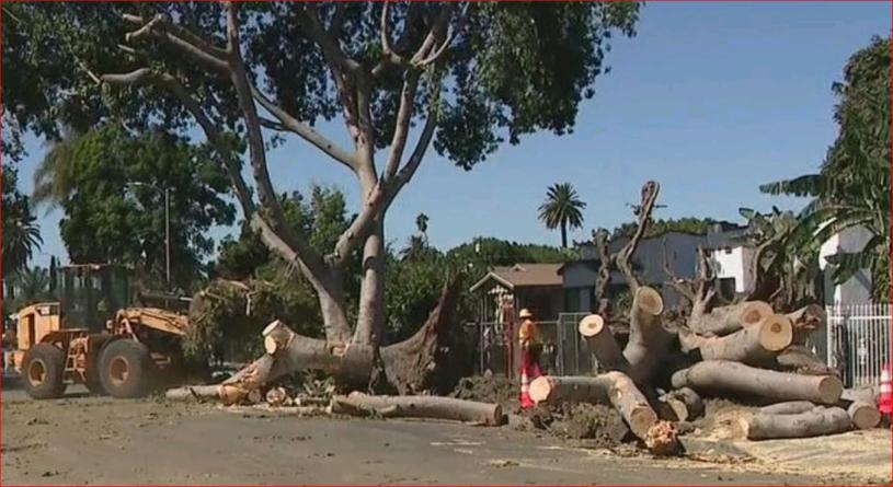 FOX11報道,近日席捲南加州的強風導致南洛杉磯的居民區路邊的巨大梧桐樹 (sycamores) 被吹倒,砸壞了路邊的汽車,所幸無人員傷亡。社區居民抱怨說,這場事故和損失本可避免,是洛杉磯市的不作為導致了事故的發生。