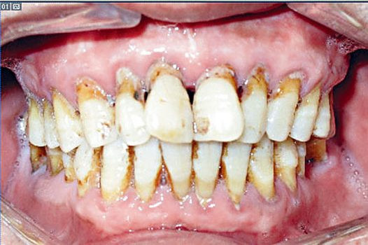 牙周病是一種漸進性疾病,是由於細菌侵蝕牙齦和牙齒分離,導致牙齦和支持牙齒的骨骼發炎或受感染,若不及早治療,牙周炎會令牙肉收縮,破壞牙肉及牙骨組織,從而使牙肉發生紅腫,含膿,鬆弛和容易流血、情況會越來越壞,到了晚期,發炎的牙齦會和牙齒分離,支持的骨骼也被破壞,牙齒鬆動,最終要拔掉。