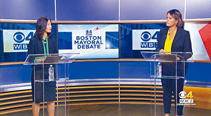 波士頓市長候選人吳弭(Michelle Wu)和安妮莎.埃塞比.喬治(Annissa Essaibi George)於10月13日(周三)晚上在第一次電視辯論中,就學校、住房、公共安全和該市的阿片類藥物危機進行對決。