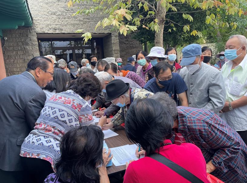羅省中華會館於15日在國泰老人大廈為住客簽名請願,抗議和要求市議區的修改小組修改現提議地圖,不要將華埠分割為二,應保持華埠在同一選區。