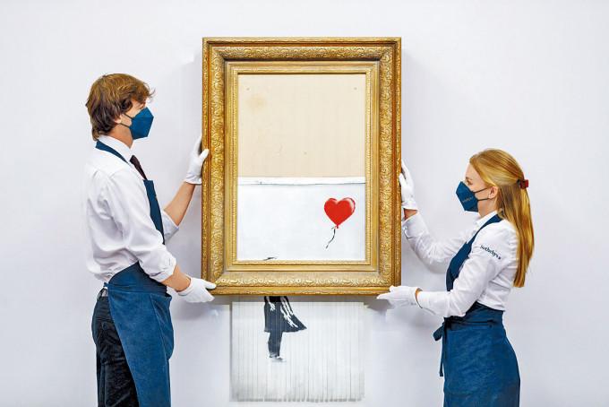 (星島日報報道)英國著名的神秘塗鴉藝術家班克西(Banksy),其「自毀畫」《垃圾桶裏的愛》,周四在倫敦以一千八百五十八萬英鎊(約一億九千七百四十四萬港元)的天價成交,不僅刷新班克西作品拍賣價紀錄,也遠超出估價。