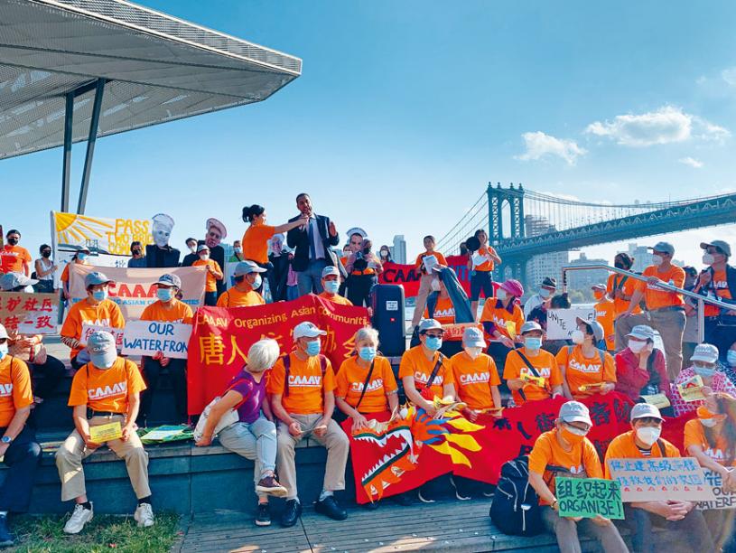 兩橋社區及下東城豪華大廈建案是近年來引發社區關注的話題,與之相關的訴訟也接連不斷。亞裔反暴力聯盟、美好的下東城、住房維權團體等多個組織的成員和代表16日齊集兩橋社區35號碼頭,抗議開放商在該社區修建豪華大廈,並呼籲通過兩橋社區規劃方案。第一選區市議員民主黨候選人馬泰昨到場聲援,但被問及是否支持兩橋社區規劃方案時,沒有給出明確答復的馬泰立刻被在場人士反嗆如果不支持該方案,就是與開發商為伍。