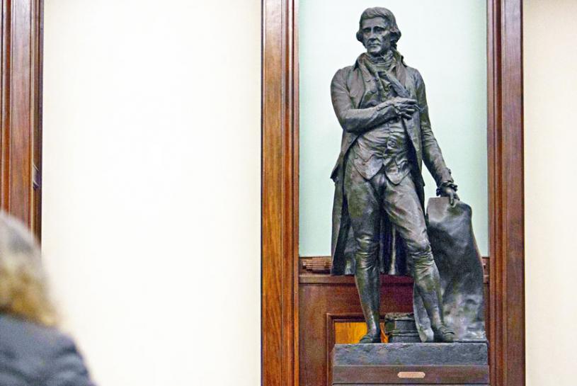 100多年來,傑斐遜(Thomas Jefferson)的7呎高塑像一直聳立在紐約市議會內,證明了他作為美國開國元勳之一及《獨立宣言》起草人的重要角色。