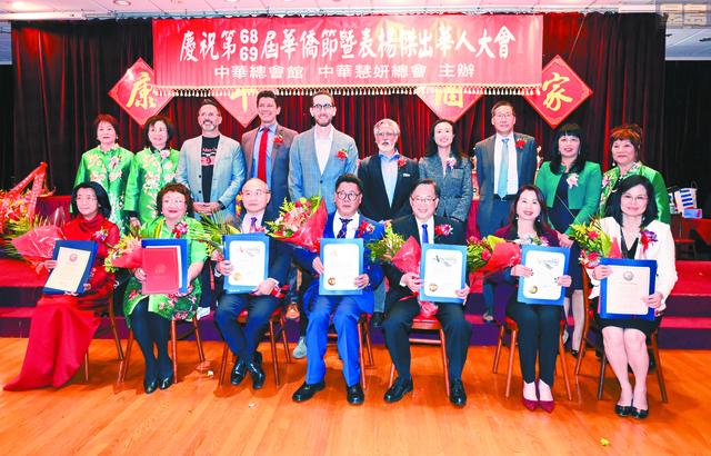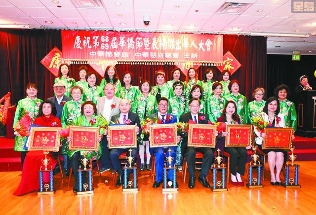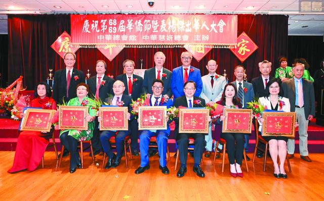 中華總會館、中華慧妍總會於10月16日中午假座華埠康年酒家聯合舉行 [第六十八&六十九屆華僑節暨傑出華人頒獎典禮]。州參議員威善高、三藩市估值官郭華健、市參事佩斯金、市參事陳詩敏、市參事馬兆明、市參事華頌善、州參議員丁右立代表伍玉珍、市立大學校董王兆倫等蒞臨祝賀並頒發賀狀;中華總會館總董暨寧陽主席朱汝湛、肇慶總會館主席司徒仲山、合和總會館主席余健全、岡州總會館主席曾卓然、陽和總會館主席梁國源、三邑總會館主席關家澄、通事黃國康;2020年度陽和總會館主席何東石、三邑總會館主席張冠榮、人和總會館主席蕭挺、通事劉榮浩。中華慧妍總會會長徐蘭英、大會主席暨創辦人李人芝;法律顧問郭麗蓮、鄧孟詩;名譽會長方謝潔霞、雷溫玉嬋、高慧琍、李鍾美薇;創會永遠董事彭李碧珍;顧問李啟文、名譽顧問蕭挺、方創傑;第一副會長蘇淑君、第二副會長張曉春、第三副會長劉李美芳;創會永遠董事彭李碧珍、名譽董事長胡林眉、中文書記沈黎碧鳴、英文書記黃廖雪萍;董事柯維玲、熊素珍、吳賽英、黃筱雅、何嘉倫,以及各僑界首長、嘉賓共逾五百多人出席慶會。柔功門醒獅健兒親臨,歡騰躍舞,呈送吉祥,為慶祝活動拉開序幕。