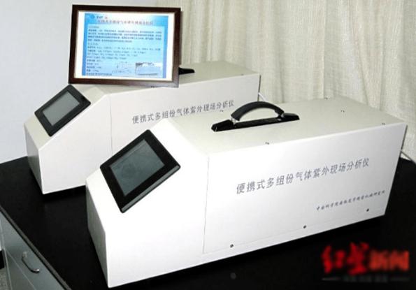 但內地媒體報道,早在2012年,中科院合肥研究院安徽光學精密機械研究所就曾發布一項名為「便攜式多組份氣體紫外現場分析儀」的研究成果,主要完成人第一位正是劉建國。且對比兩人的成果名稱、功用、研究原理等,發現二者高度吻合,除了外觀上的些微區別:父親的作品側面印有「中科院安徽光學精密機械研究所」的字眼,而兒子設計的裝置則在相同位置變成了黑色膠帶。