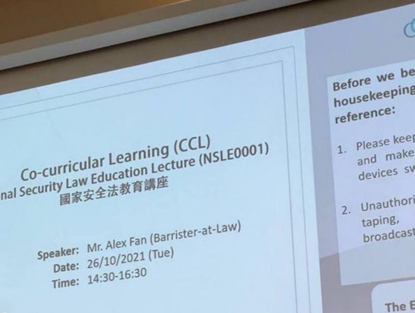 浸大早前將國安教育列為「聯通課程」(CCL),全名為「國家安全法教育」(National Security Law Education),課程編號為 NSLE0001,規定今年9月起入學的本科新生須修畢2小時的「國安法教育」面授課堂方並合格方可畢業。