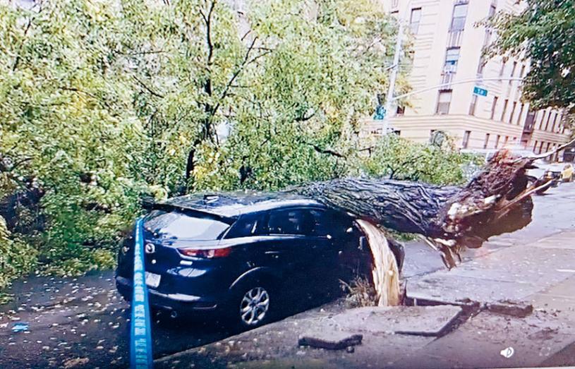 在西南皇后區積臣泰(Jackson Heights)35大道夾72街一棵百年大樹被狂風連根拔起吹斷,壓毀停在路邊的一輛汽車,當時車內無人,沒有傷亡報告,不過,樹幹扯斷電線,積臣泰地區有逾500房屋和商店電力一度中斷。