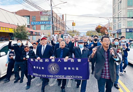 集會結束後,逾千人在警方的帶領下高舉反對該計劃的中英文標語,並高喊「保衛家園」及「沒有社區參與就沒有遊民收容所」等中英文口號,沿8大道交65街遊行至55街,引得各族裔民眾駐足圍觀。