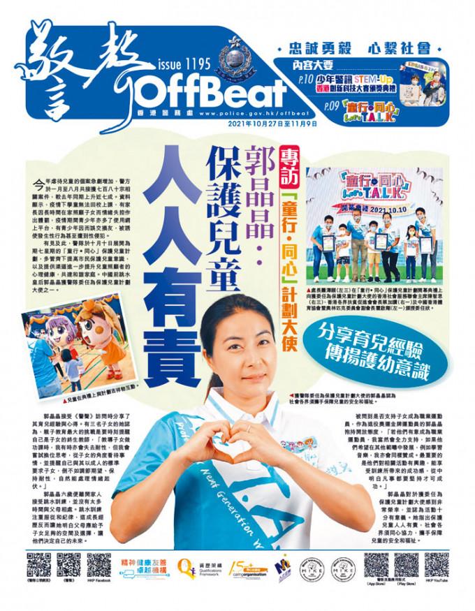 (星島日報報道)警隊本月展開為期七星期的「童行.同心 Let’s T.A.L.K.保護兒童計畫」,以提高市民保護兒童意識,改善兒童照顧者的心理健康,警隊刊物《警聲》最新一期封面故事刊出計畫大使之一、前跳水皇后郭晶晶的專訪,她指出每個人都有責任保護兒童,社會各界需合作保障新一代的福祉。