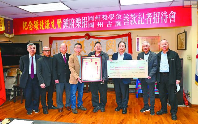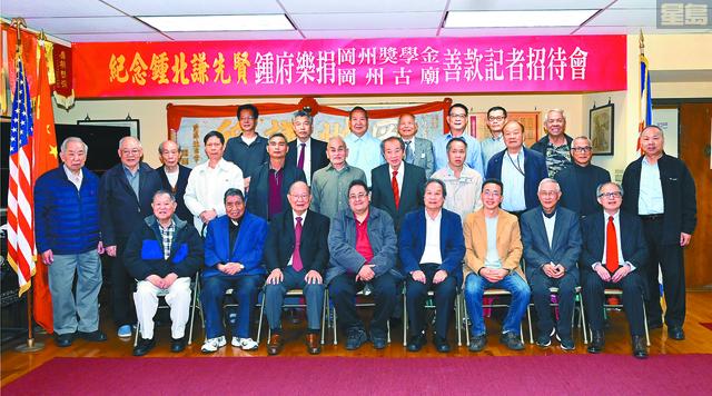 岡州總會館於11月14日中午在總會館禮堂舉行紀念鍾北謙先賢—鍾府樂捐岡州獎學金、岡州古廟善款記者招待會。岡州總會館主席暨中華總會館總董曾卓然、秘書長蔣欽和;顧問李禎祥、林 壽、劉志明、蔣康榮;獎學金基金會主任薛曹績;鍾北謙先賢的兒子Michael;理事陳自勤、林祖光、張逢濯、劉仲賢、趙子達、高卓雄、劉志良等出席。秘書長蔣欽和主持招待會秩序。主席曾卓然致詞,他表示:大家生活在華埠,相信都曾聽過鍾北謙這個名字,亦見過寶謙昌這塊耀眼招牌。鍾北謙先賢是旅居三藩市我岡州大澤人氏,也是華埠幾十年老字號寶謙昌參茸行的東主,擁有在威州自己種植花旗參農場。鍾公自幼受庭訓,曾在中國接受高等教育,來美後畢業於柏克萊加大鍾公對我岡州會館的貢獻非常大。上世紀七八十年代歷任岡州總會館秘書長,協助多位主席發展會務,例如重建岡州大廈,岡州古廟;創立岡州獎學基金會,如今金碧輝煌的岡州大廈,香火頂盛的岡州古廟和澤及全市學子的岡州獎學基金會,實在跟鍾公的勞苦功高是分不開的,所以鍾公既是岡州古廟策建的永遠執事,又是岡州獎學基金會永遠顧問實至名歸。在華埠,鐘公乃商界翹楚,又是德高望重,熱心公益,造福僑胞,慈懷博愛,僑領楷模,曾任聖瑪利中文學校校董,誠信銀行董事,北美洲中醫藥協會創辦人,華埠保育基金會主席,美國華商總會董事,廣東五邑大學榮譽校董。鍾公樂助善款予東華醫院及社會團體及家鄉學校建設不遺餘力,功德無量,德澤宏施,高風亮節,今天鍾府家人敬遵其遺志,繼續樂助岡州獎學金二萬元,為隆重其事,本總會館特招開記者招待會來表揚鍾府之善舉,多謝大家。