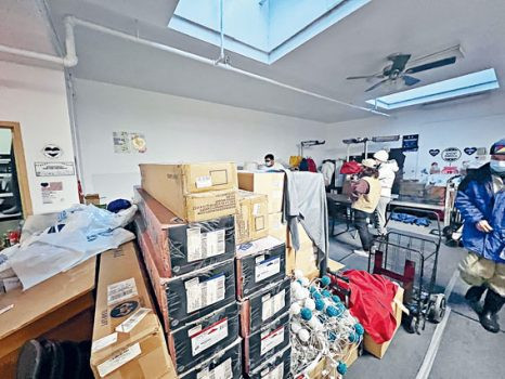 華埠共同發展機構辦公室內堆放了許多物資,陳作舟表示,如果要搬遷,如何搬運這批物資也是難題。