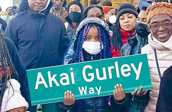 於上周日(21日)命案發生的7周年日,在一項有多名民選議員,社區人士和凱利家屬參加的儀式中,東紐約區林登大道靠近艾爾特巷(Eldert Lane)被命名為Akai Gurley Lane。