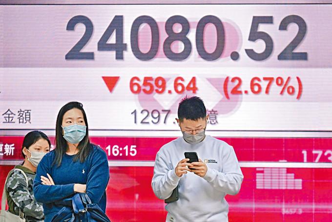 (星島日報報道)南非出現全新變種新冠病毒,市場憂慮疫情升溫,杜指期貨急插,導致亞洲主要股市顯著受壓,港股隨外圍急挫,恒指低開237點報24502,但已為全日高位,其後沽壓加重,最終大跌659點或2.67%,收報24080,終止兩連彈。國指挫233點或2.65%,收報8576;科指挫206點或3.25%,收報6151。