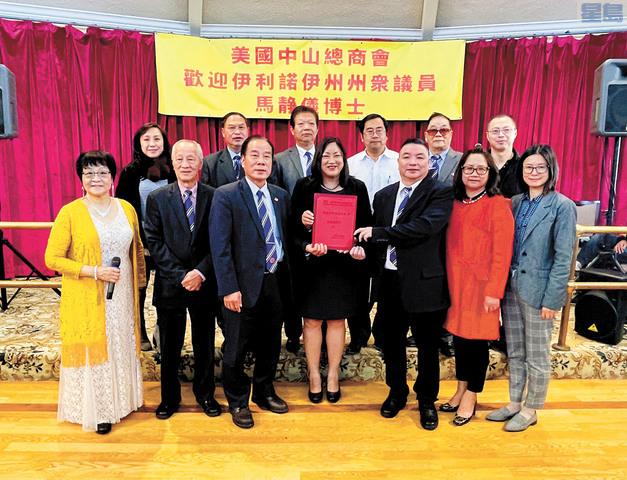 美國中山總商會27日中午在阿拉美達怡景麗苑酒家舉辦歡迎伊利諾伊州眾議員馬靜儀博士暨感恩節慶會,美國中山總商會名譽會長馬金權和夫人(馬靜儀的父母)、美國中山總商會會長劉春明、執行副會長區卓煥、副會長廖伽敏、劉浩勇、方錦航、顧問沈小鴻、理事劉幗瑜、周帝煥、餘超先、劉應宗等,陽和總會館主席梁國源,以及僑領張福明、林志強、葉坤玲、譚念貼、黎志滔、劉文光、劉少欽、蕭健榮等100多人出席。大家紛紛支持華人參政議政,互相之間進行良好溝通,增進瞭解和友誼。預祝馬靜儀(前排中)連任伊利諾伊州眾議員成功,有更多時間為華人辦實事、辦好事,在異國他鄉為華人開創一片天,為華人爭光。圖:黎志滔提供 文:記者黃偉江