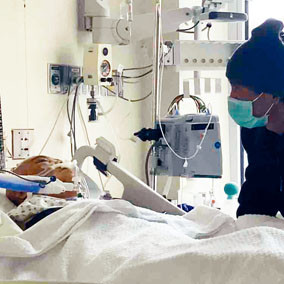 馬桂英的丈夫守在病床前不停與她說話,28日他觀察到她的腳趾和手指動了一下。