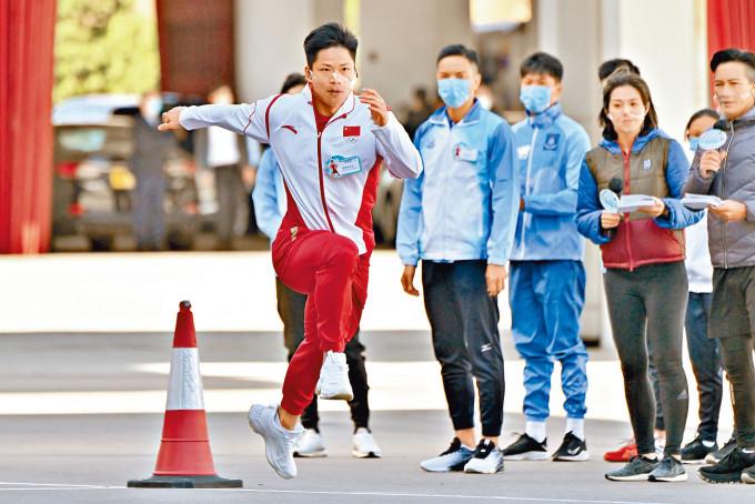 (星島日報報道)東京奧運會中國健兒代表團昨兵分多路,其中亞洲飛人蘇炳添無論在早上的香港紀律部隊交流活動,抑或傍晚的奧運健兒大匯演,都廣受熱烈歡迎。他即席示範世界頂級的「摩打腳」步法,叫市民拍案叫絕,還跟國家隊健兒和本地紀律部隊,合力替香港特殊奧運會籌得一百零二萬五千元善款。