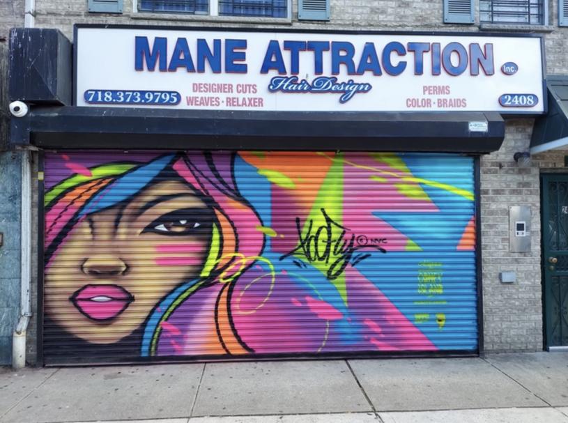 布碌崙康尼島每年夏季是紐約市一個熱門活動和旅遊景點,該區在疫情後重啟準備以全新的面貌迎接遊客,在該區地鐵站外一個牆壁上繪製 一幅龐大壁畫,做為歡迎遊客到場的歡迎大使。