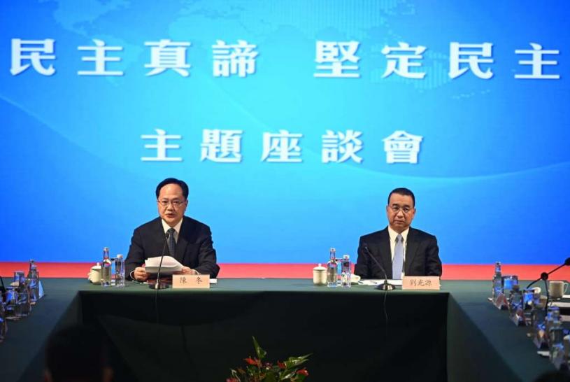 中聯辦副主任陳冬表示,國務院新聞辦早前發布《中國的民主》白皮書,這是西方體系之外有巨大實踐支持的民主具體論述。總有一些國家有那麼一部分人,不是從事實出發,而是帶著有色眼鏡指手畫腳,甚至惡意攻擊抹黑,建議這些人認真讀一讀中國的民主白皮書這份重要文獻,理解中國民主的發展。