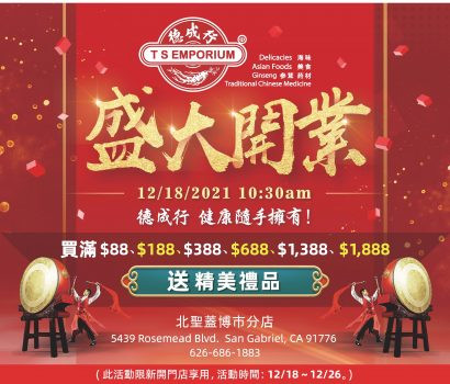 連同北聖蓋博店,德成行目前共有五間門店,分別有兩間座落蒙特利公園,羅蘭崗,工業市和北聖蓋博市。德成行的網上商城經歷了疫情的洗禮,銷售令人驚喜,為居住於美國華人提供更加便捷方便的購物體驗和價廉物美的商品,來到德成行讓您雖然身在異鄉,也能品嚐到家鄉的味道。