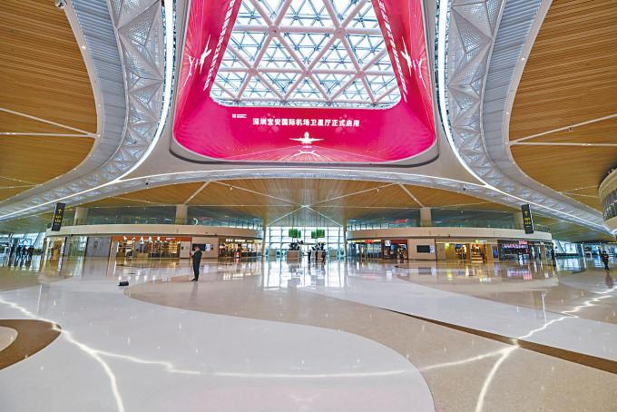 (星島日報報道)深圳機場衛星廳前天正式通航。作為T3航站樓功能的延伸,衛星廳主要提供國內航班旅客候機和中轉服務,其主體結構呈「X」形,最多可保障五十三架飛機停靠廊橋,啟用後將大幅度增加深圳機場的近機位,提高航班靠橋率,提升深圳機場資源供給保障能力,支撐國際航空樞紐建設。