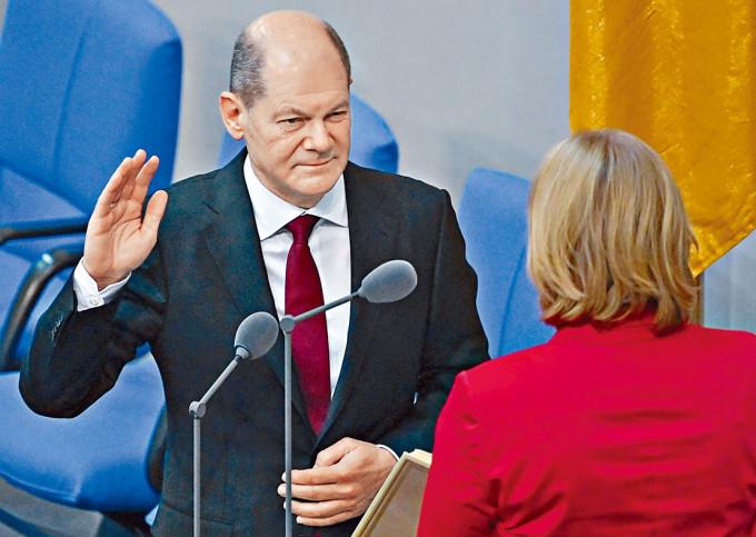 德國國會昨日投票選出肖爾茨為新總理,他在國會宣誓就職。肖爾茨一九五八年生於奧斯納布呂克市一個工人家庭,曾任漢堡市長、財政部長和副總理等職務。社民黨、綠黨和自民黨周二簽署聯合執政協定(因三黨標誌顏色為紅綠黃,被稱為交通燈聯盟),肖爾茨其後在記者會上強調,聯合政府的外交政策核心是打造「強有力的、獨立自主的歐盟」。他對美國總統拜登強化民主國家共同體的努力表示讚賞,但他也表示,對於中國、俄羅斯等擁有不同政府模式的國家,也應開展多邊合作。