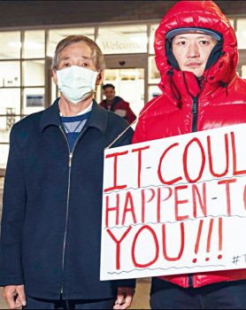 高占新(左)讓China Mac不要再靜默集會了,因為他知道馬桂英會心疼他們一直站在寒風中。