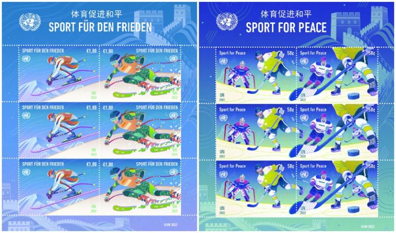 聯合國郵政管理局前日宣布,為慶祝北京召開冬奧會,將發行主題為「體育促進和平」的郵票,這也是聯合國首次為冬奧會發行郵票。