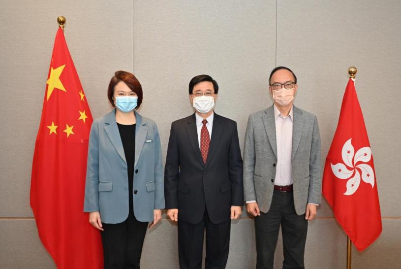 李家超與李慧琼及馬逢國進行今屆立法會的首次會面。政府新聞處圖片