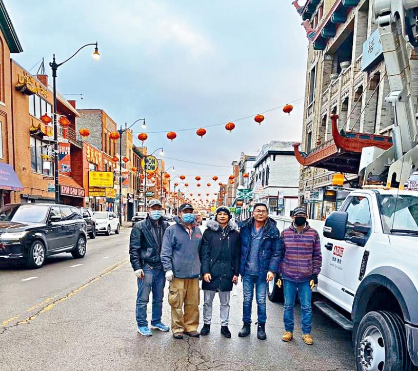 福建總商會、美中餐飲協會、華埠治安基金會、廣州協會的同仁們及義工們近日冒著芝加哥滴水成冰的酷寒天氣、與熱心參與的好友們,在農曆新年即將來臨之際,提前在南華埠各處掛上了上千個紅紅的大燈籠,在立冬之後為唐人街帶來張燈掛彩濃郁的年味、也為遊客與民眾提前送上新春的美好祝願,祈願在新的一年,能替民眾帶來紅紅火火的一年、迎來千家萬戶新氣息。