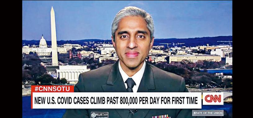 Omicron變種病毒導致的病例大幅飆升令全美本已疲於應付的醫院幾乎到達崩潰邊緣。令人更加絕望的是,全國衛生總監默西(Vivek Murthy)16日發出警告,指這波由Omicron導致的疫情還未見頂,疫情在未來幾周將會更嚴峻。